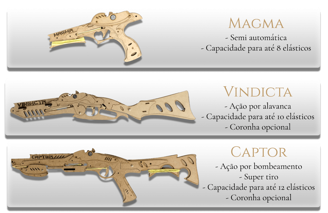 Eu comprei duas armas de atirar ligas…(magma) Muito boas, lindas, bem feitas e promovem diversão certa até hoje! O estoque de ligas são repostas de 500 unidades em diante! O atendimento pra comprar foi de primeira claro, me dando todas as formas que me facilitasse o pagamento ! Brinquedo muito , mas muito 10! Super indico! Morro de vontade de comprar os quadros